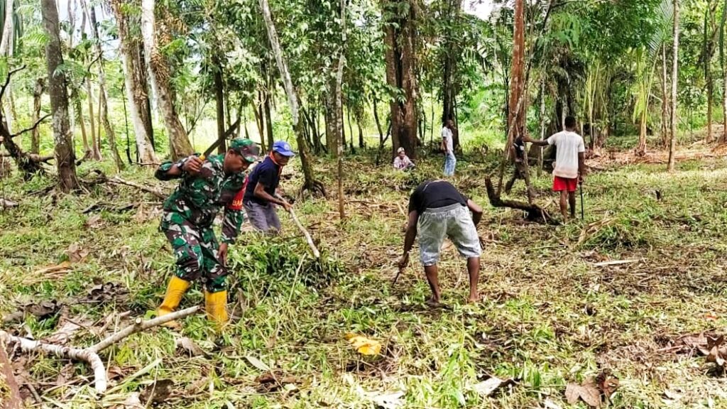 SENTANI – Wujud kebersamaan di wilayah binaan Babinsa Koramil 1701-16/Unurum guay,