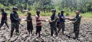 Satgas Yonif Raider 321/GT/13/1 Kostrad bersama Dinas Pertanian Kabupaten Jayawijaya dalam rangka mendukung ketahanan pangan sekaligus meningkatkan perekonomian masyarakat Papua,...