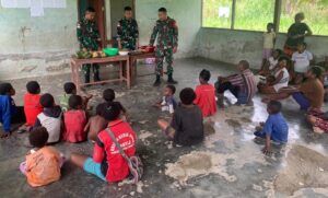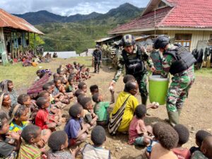 Sebagai bentuk kepedulian untuk berbagi dalam kebersamaan dengan masyarakat di daerah penugasan, Satgas Yonif Raider 321/GT/13/1 Kostrad Pos Kotis Mbua...