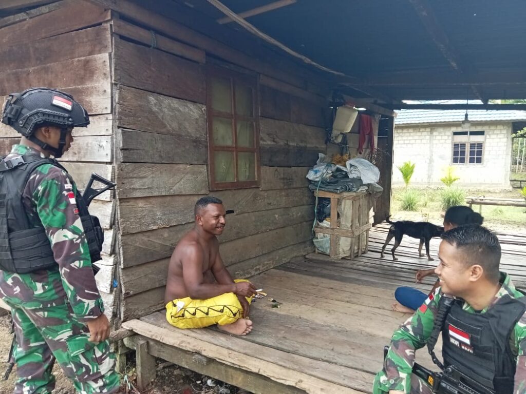 Personel Pos Wambes berkeliling kampung dengan menyapa satu persatu masyarakat yang sedang bersantai dirumahnya. Tampak sikap antusias ditunjukkan masyarakat atas kedatangan personel Satgas Yonif 132/BS tersebut.