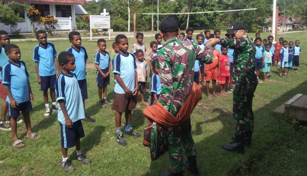 Keerom – Dalam rangka mewujudkan lingkungan pendidikan yang menyenangkan dan nyaman, berbagai upaya dilakukan Satgas Yonif 143/TWEJ guna menumbuhkan dan memacu semangat belajar anak-anak di pedalaman Papua sebagai wujud konsistensi dan komitmen Satgas turut memajukan pendidikan di wilayah penugasan.