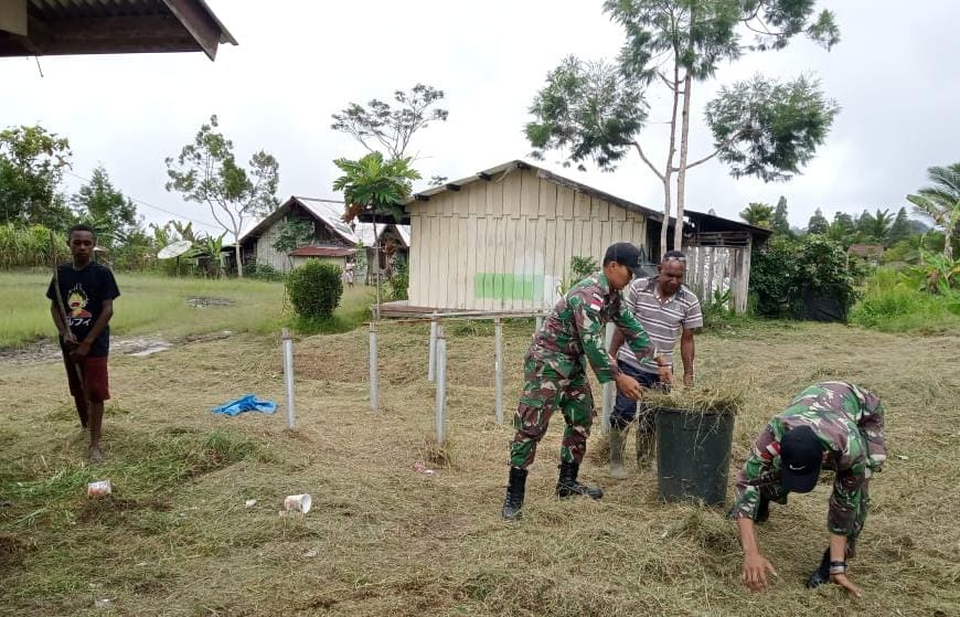 Yalimo ~ Sebagai wujud kepedulian terhadap kebersihan dan kenyamanan lingkungan, anggota Pos Apalapsili Satgas Yonif Raider 200/BN bersama warga masyarakat menggelar pembersihan lingkungan Kantor Distrik Apalapsili, Kab. Yalimo, Papua Pegunungan, Selasa (23/5/2023).
