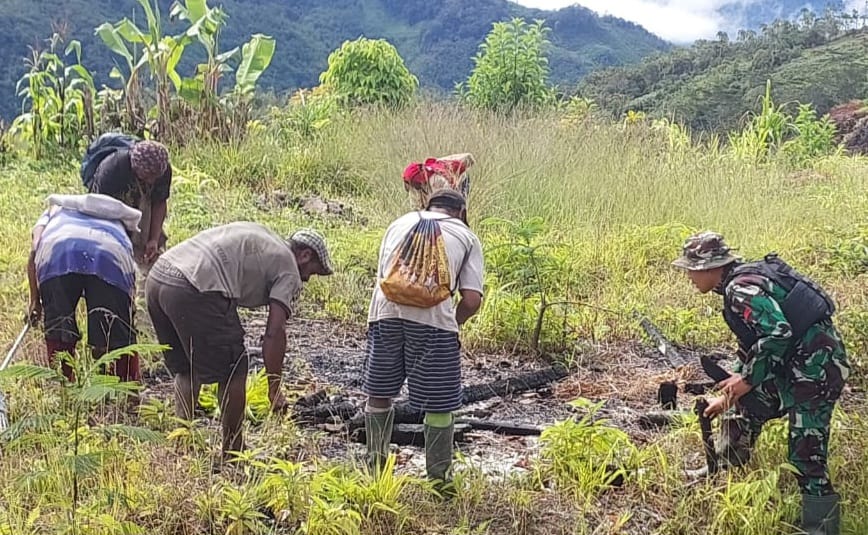 Pegunungan Bintang ~ Dalam rangka membudayakan lingkungan yang bersih dan sehat, Satgas Yonif 143/TWEJ mengajak gotong royong masyarakat di Distrik Kiwirok, Kab. Pegunungan Bintang, Papua Pegunungan, Minggu (18/6/2023).