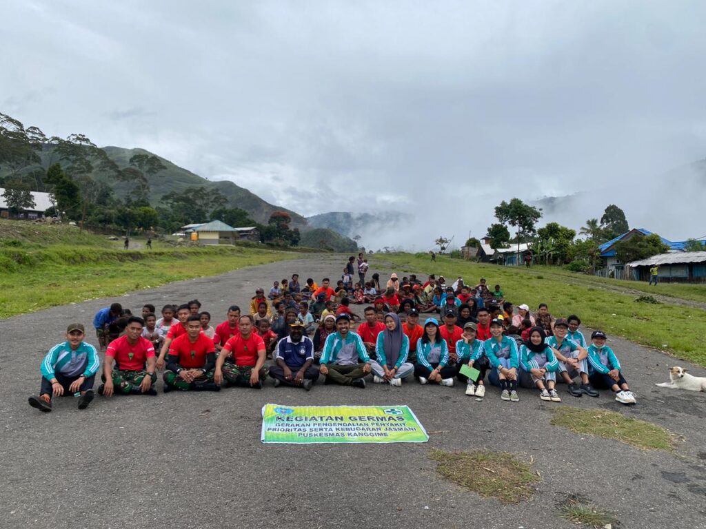 Turut hadir dalam kegiatan ini Danpos Kanggime bersama 20 personel lainnya, kepala Puskesmas Kanggime berserta tim, Camat Kanggime serta masyarakat Distrik Kanggime.