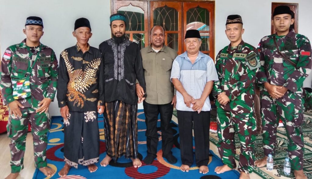Keerom ~ Sebagai wujud eratnya hubungan emosional yang terjalin dengan warga masyarakat, Satgas Yonif 143/TWEJ Pos Senggi menghadiri acara silaturahmi rangka menyambut datangnya Hari Raya Idul Adha 1444 H di Masjid Al Muhajirin, Kampung Woslay, Distrik Senggi, Kab. Keerom, Papua, Senin (19/6/2023).