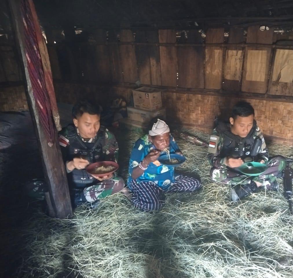 “Kali ini kami dari Satgas datang ke rumah Tokoh Agama Kampung Owagambak Mama Weni Komba dengan membawa bahan makanan dan juga bumbu untuk dimasak dan disantap bersama,” ungkap Danpos.