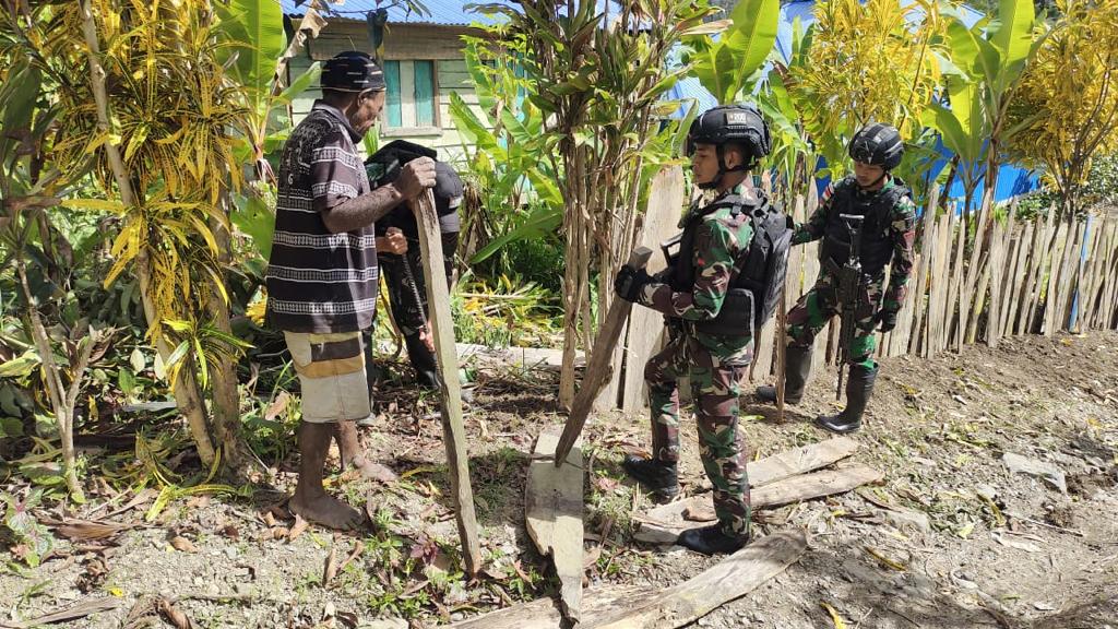 Pada saat personel Satgas sedang melintasi jalan desa untuk melaksanakan kegiatan tersebut, mereka melihat salah satu warga a.n. Bapak Yohanes sedang memperbaiki pagar rumah dan kebunnya. Melihat hal itu, tanpa ragu personel Satgas segera membantu warga tersebut. Bapak Yohanes, mengaku sangat senang dengan kedatangan anggota TNI Pos Kelila atas kunjungannya ke rumah serta membantu memperbaiki pagar rumah dan kebunnya.