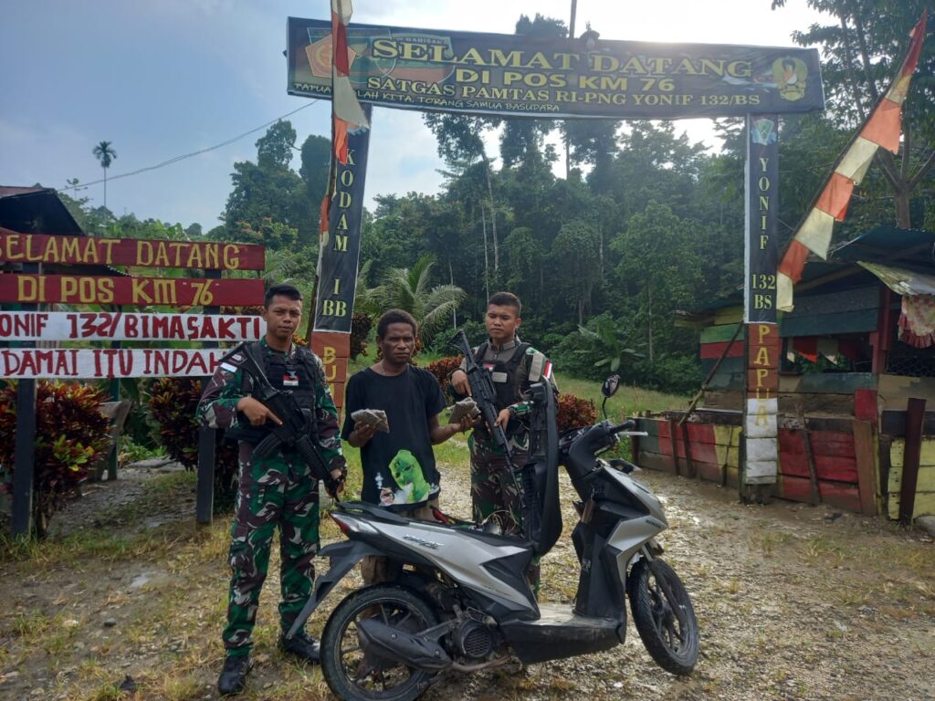 Beberapa hari sebelumnya, bertempat Di Kompleks PLBN Skouw, personel Pos Kout Satgas Yonif 132/BS mengamankan pemuda yang kedapatan membawa lima bungkus ganja kering yang ia sembunyikan didalam kardus makanan ringan yang ia bawa dari PNG, kejadian bermula ketika ia hendak melintas menuju indonesia, petugas imigrasi PLBN Skouw beserta personel Satgas Yonif 132/BS melaksanakan prosedur pemeriksaan terhadap siapapun yang hendak melintas baik menuju indonesia atau pun PNG.