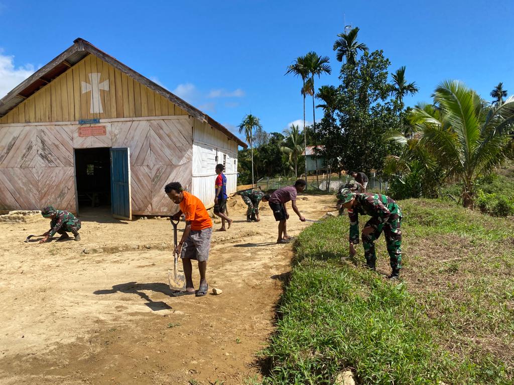 Pada kesempatan ini Satgas Yonif 143/TWEJ bersama masyarakat Kampung Tatakra bersama-sama membersihkan Gereja mulai dari ruang ibadah sampai dengan halaman sekitar sebagai upaya menciptakan sarana peribadatan yang nyaman.