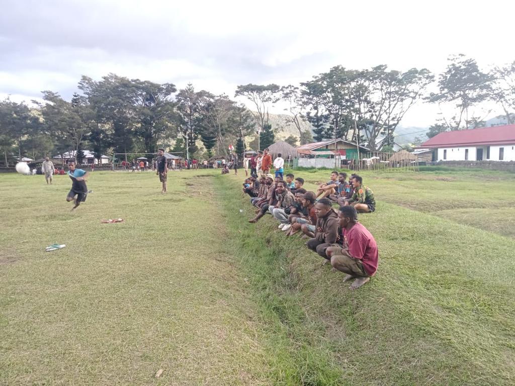 Jayawijaya ~ Untuk meningkatkan minat berolahraga serta menjalin keakraban dengan pemuda dan masyarakat, Satgas Yonif Raider 200/BN melalui Pos Bolakme memberikan bantuan berupa bola voli dan bola kaki dilanjutkan dengan pertandingan olahraga bersama para pemuda Kampung Bolakme, Distrik Bolakme, Kab. Jayawijaya, Papua Pegunungan, Senin (19/6/2023).