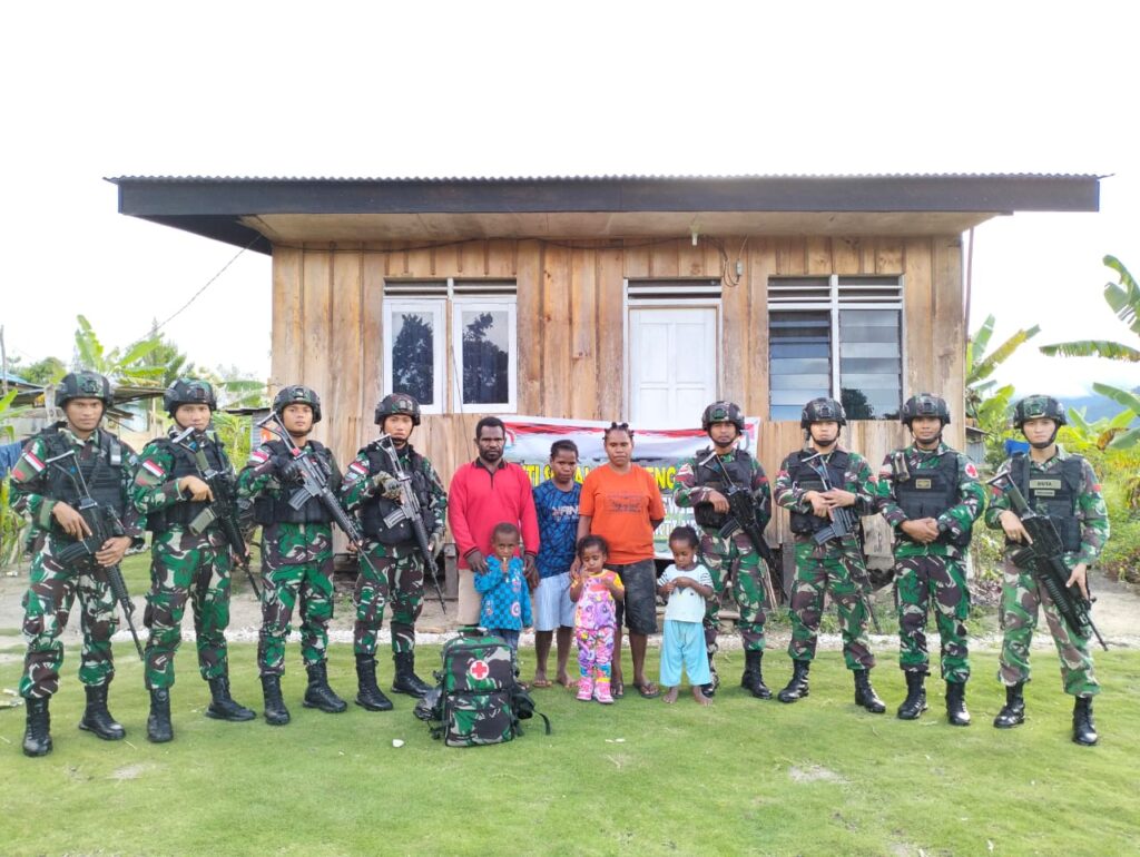 Mamberamo Tengah ~ Dalam upaya tetap menjaga hubungan baik dengan masyarakat binaan, Pos Kobagma Satgas Yonif Raider 200/BN melaksanakan kunjungan ke salah satu rumah warga di Kampung Gimbis, Distrik Kobagma, Kab. Mamberamo Tengah, Papua Pegunungan, Rabu (5/7/2023).