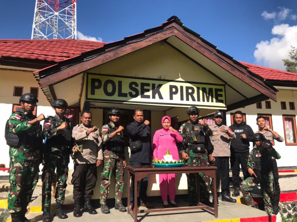 “Kami bersama 10 personel pos datang ke Polsek Pirime untuk memberikan kejutan berupa nasi tumpeng, selain untuk menjalin hubungan yang harmonis antar Pos Satgas TNI dengan Pihak Kepolisian, juga merupakan wujud sinergitas TNI-Polri dalam menjaga keamanan di wilayah Lanny Jaya”, Ucap Danpos Pirime.