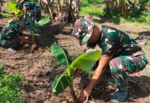Keerom ~ Dalam rangka mewujudkan ketahanan pangan dan mendapatkan hasil panen yang maksimal dalam berkebun pisang, Satgas Yonif 143/TWEJ Pos...