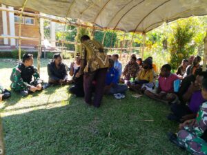 Keerom - Peran aktif Babinsa Koramil 1701-23/Skanto, Serda Martinus Hesegem bersama warga masyarakat binaan dan ibu Ririn Januaritin Farm lakukan...