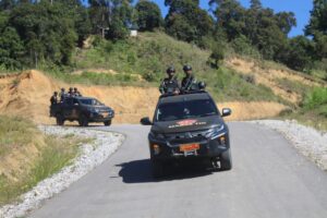 Dalam rangka memperingati HUT Bhayangkara ke-77, Satgas yonif 721/Mks bersama Koramil 1702-04 Tiom kunjungi Polres Lanny Jaya laksanakan upacara bersama,...