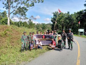 Kab. Keerom - Satgas Yonif 132/BS Pos Kalibom bersama masyarakat melaksanakan kegiatan kerja bakti membersihkan Jalan di Kp. Kalibom, Distrik...