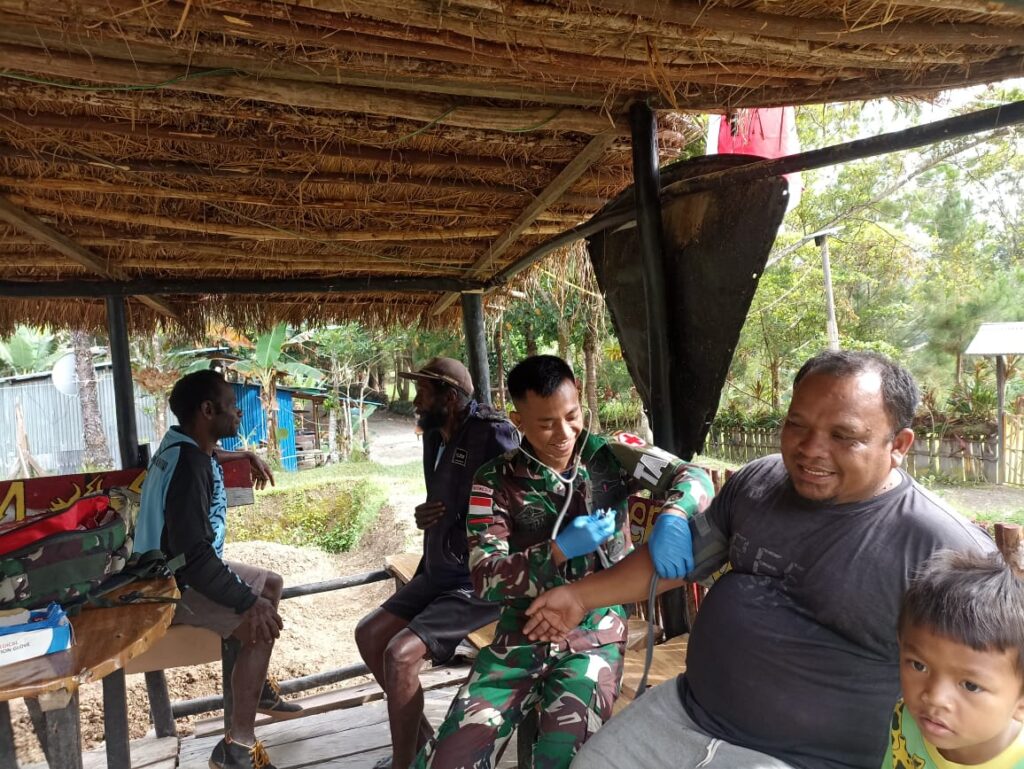 Mamberamo Tengah ~ Satgas Yonif Raider 200/BN menggelar pengobatan kepada masyarakat di Pos Kelila, Distrik Kelila, Kab. Mamberamo Tengah, Papua Pegunungan, Jum’at (7/7/2023).
