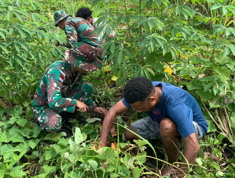 Keerom ~ Sebagai wujud perhatian Satgas Yonif 143/TWEJ kepada warga guna memenuhi ketersediaan bahan makanan pokok masyarakat Papua, satuan ini selalu melakukan pendekatan kepada masyarakat untuk memanfaatkan lahan yang sangat belum diolah maksimal untuk ditanami tanaman pangan sebagai persediaan bahan makanan.