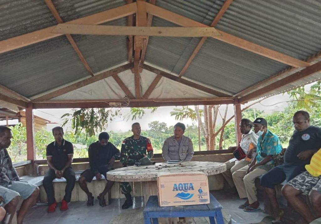 Keerom – Demi ciptakan rasa aman dan nyaman warga di perbatasan, Pos Senggi Satgas Yonif 310/KK bersama aparatur setempat lakukan mediasi kepada dua warga yang bertikai di Kampung Senggi Distrik Senggi Kabupaten Keerom, Kamis (23/11/2023).