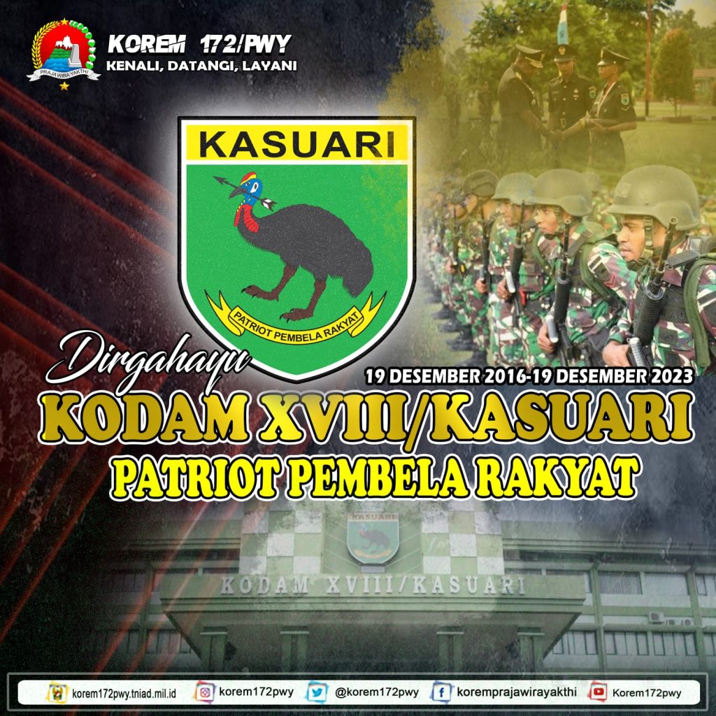 KOMANDAN KOREM 172/PRAJA WIRA YAKTHI BESERTA SELURUH KELUARGA BESAR KOREM 172/PWY MENGUCAPKAN :