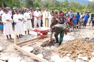 Wamena - Dandim 1702/JWY Letkol Cpn Athenius Murip, S.H.,M.H menghadiri acara peletakan batu pertama Gedung Pastoral Gereja Katolik Paroki Imanuel...