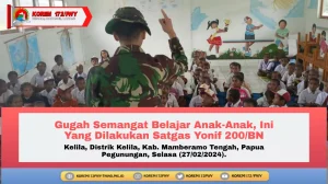 Mamberamo Tengah ~ Satgas Yonif 200/BN melalui Pos Kelila melaksanakan kegiatan mengajar di SDN Kelila yang berada di Kampung Kelila,...