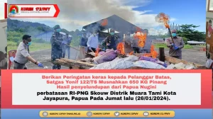 Jayapura- Satgas Pamtas Statis RI- PNG Yonif 122/TS berhasil menggagalkan Penyeludupan Pinang Secara Ilegal dari negara PNG melalui jalan pelolosan...