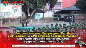 Jayapura – Komandan Korem 172/PWY Brigjen TNI Dedi Hardono, S.I.P., memimpin Apel Gelar Pasukan Pengamanan Pemilu Tahun 2024 di wilayah...
