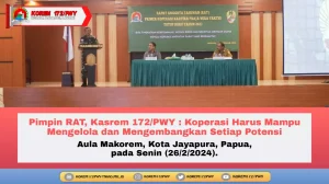 Jayapura - Kasrem 172/PWY Kolonel Inf Bayu Sudarmanto mewakili Danrem 172/PWY, memimpin Rapat Anggota Tahunan (RAT) Primer Koperasi Kartika Praja...