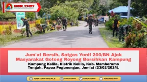 Mamberamo Tengah ~ Satgas Yonif 200/BN melalui Pos Kelila melaksanakan "Jum'at Bersih" dengan mengajak masyarakat untuk melaksanakan gotong royong membersihkan...