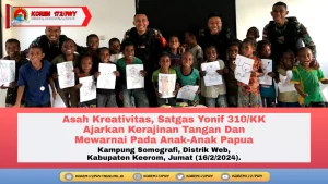 Keerom ~ Untuk mengasah kreativitas dan bentuk mengekpresikan diri pada anak-anak di perbatasan RI-PNG, Pos Somografi Satgas Yonif 310/KK ajarkan...