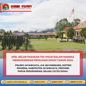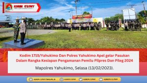Yahukimo - Kodim 1715/Yahukimo dan Polres Yahukimo melaksanakan Apel gelar Pasukan guna memastikan kesiapan dalam pengamanan pemungutan suara Pemilu Pilpres...