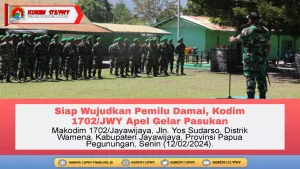 Wamena - Kepala Staf Kodim 1702/Jayawijaya Mayor Inf Romadlon, menghadiri apel gelar pasukan TNI-Polri dalam rangka mensukseskan Pemilihan Umum (Pemilu)...