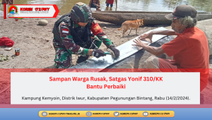 Pegunungan Bintang ~ Peduli akan warganya, prajurit Satgas Yonif 310/KK yang berada di Pos Iwur bantu perbaiki sampan milik Gabriel...