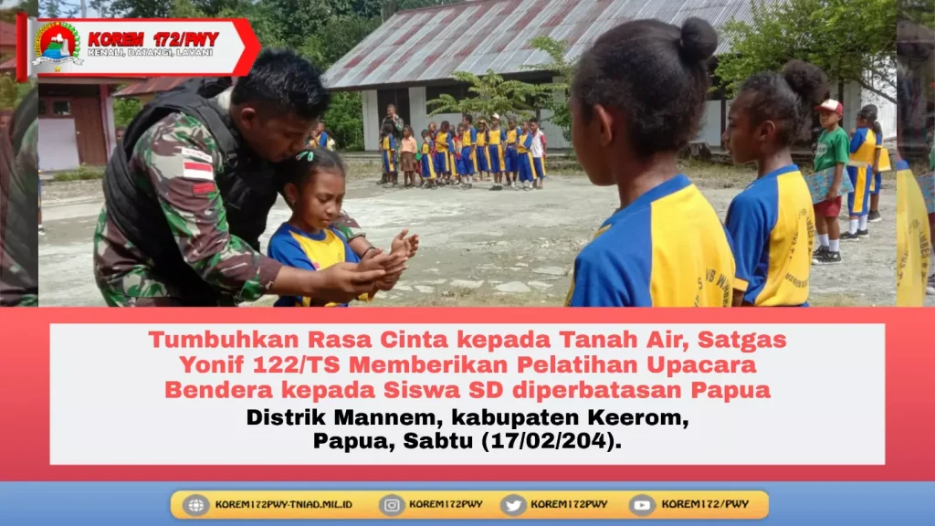Kabupaten Keerom- Sebagai bentuk pengabdian Satuan tugas pengamanan perbatasan RI-PNG Yonif 122/Tombak Sakti Pos Wambes Jajaran Kipur D berikan tenaga didik kepada anak-anak Sekolah Dasar Inpres Pir V Wambes, bertempat di Distrik Mannem, kabupaten Keerom, Papua, Sabtu (17/02/204).