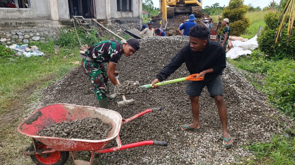 Dalam keterangannya, Dankipur B Satgas Pamtas Yonif 122/TS Kapten Inf Budi Kristiyanto, Kipur B melaksanakan karya bakti membantu pengecoran bangunan masjid bersama warga.