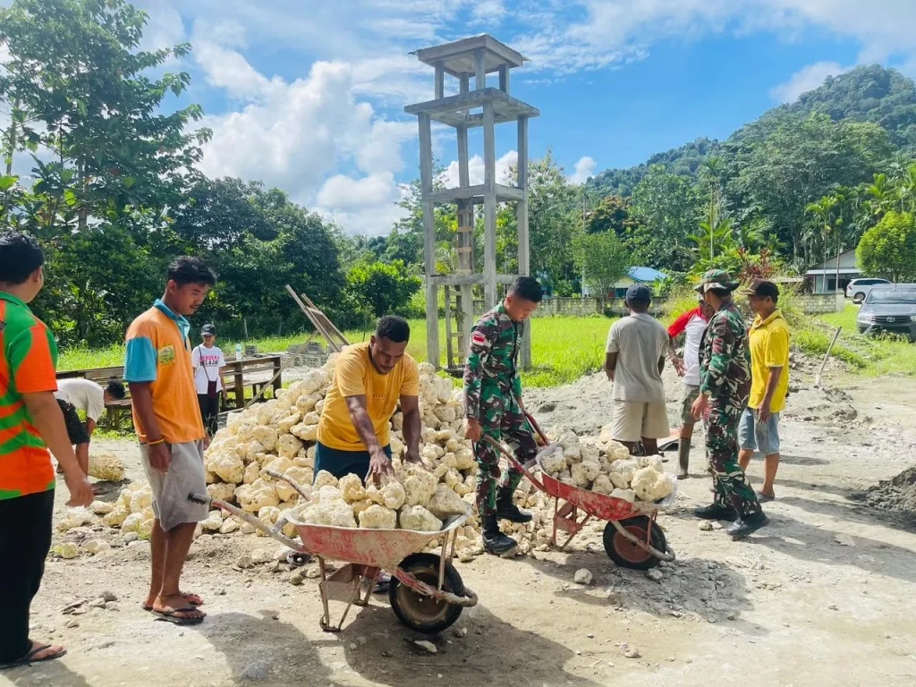 Lebih lanjut Dankipur D mengatakan kegiatan tersebut adalah salah satu kegiatan rutin personil Pos Wembi agar kerukunan dan kerja sama tersebut membuat warga lebih dekat dan hadir dalam membangun tempat Ibadah di Kampung Wembi.