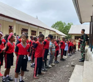 Yalimo ~ Satgas Yonif 200/BN melalui Pos Elelim mengajarkan senam Maumere kepada siswa siswi SDN Bulmu sebelum memulai pelajaran kelas...