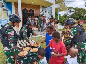 Keerom ~ Ada hal yang berbeda di Ibadah Minggu kali ini, Pos Senggi Satgas Yonif 310/KK bagikan susu dan biskuit...