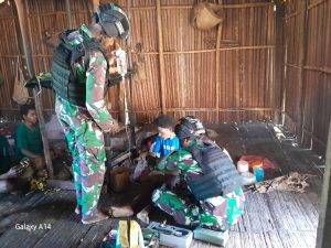Keerom ~ Peduli akan kondisi kesehatan warga di perbatasan RI-PNG, Pos Tatakra Satgas Yonif 310/KK Obati Tania Sam (65) yang...
