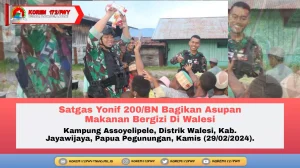Jayawijaya ~ Sebagai bentuk kepedulian terhadap anak-anak, personel Pos Kotis Walesi Satgas Yonif 200/BN berbagi asupan gizi tambahan berupa bubur...