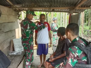 Yahukimo ~ Sebagai bentuk kepedulian atas kesehatan masyarakat Kurima, Satgas Yonif 200/BN melalui Pos Kurima berkeliling kampung berikan pelayanan kesehatan...