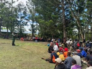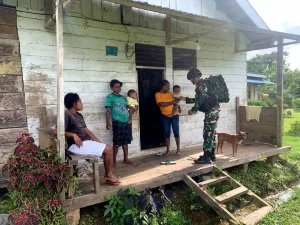 Mamberamo Tengah ~ Satgas Yonif 200/BN melalu Pos Kobakma melaksanakan anjangsana dan tegur sapa kepada masyarakat Kampung Gimbis, Distrik Kobakma,...