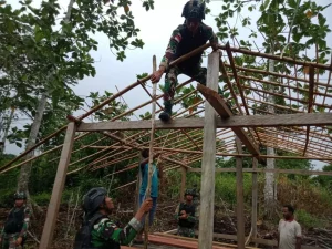 Keerom ~ Berbakti kepada orang tua adalah kewajiban setiap anak, Pos Kalipao Satgas Yonif 310/KK bantu Lukas Muwenda (35) bangunkan...