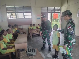 Yalimo ~ Satgas Yonif 200/BN melalu Pos Elelim melaksanakan kegiatan mengajar kepada anak-anak bertempat di SD Inpres Kampung Soba, Distrik...