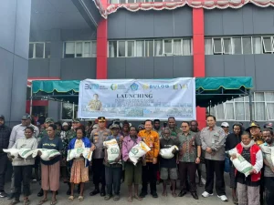 Wamena - Komandan Kodim 1702Jayawijaya Letkol Cpn Athenius Murip, S.H., M.H., hadiri launching penyaluran bantuan pangan cadangan beras pemerintah Kabupaten...