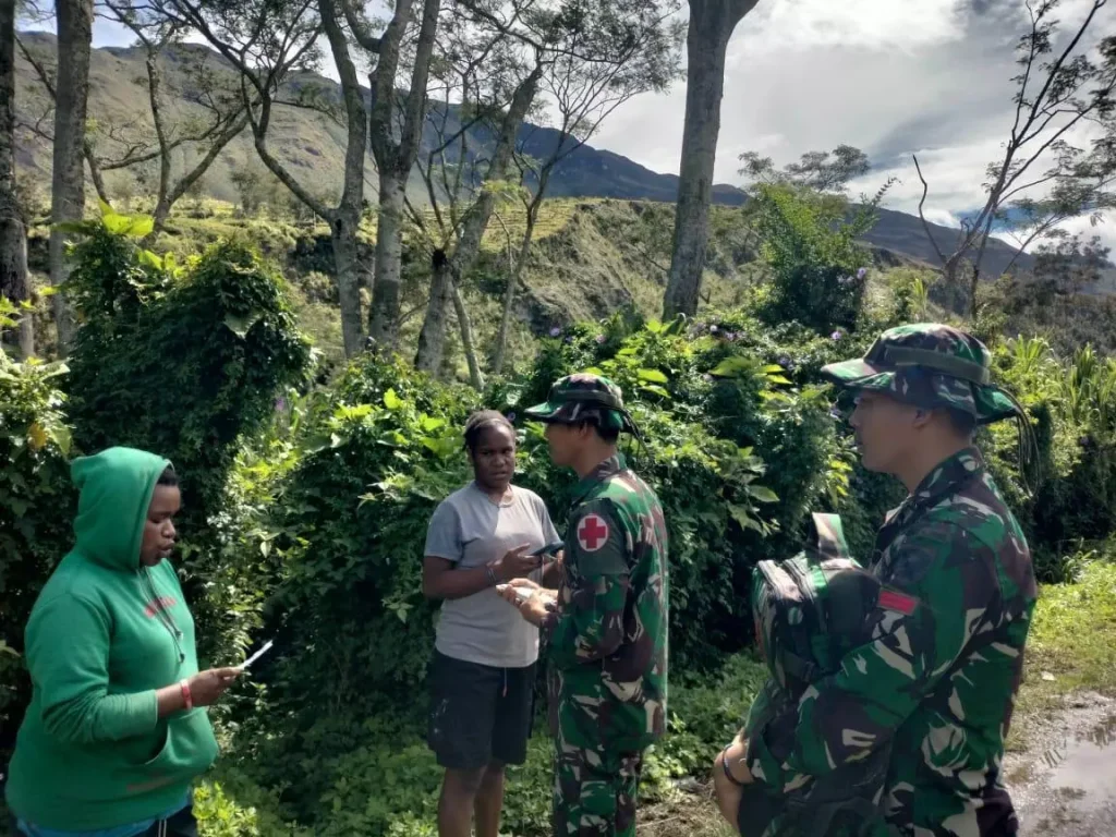 Yahukimo ~ Sebagai bentuk kepedulian atas kesehatan masyarakat Kurima, Satgas Yonif 200/BN melalui Pos Kurima berkeliling kampung berikan pelayanan kesehatan untuk memastikan kesehatan masyarakat bertempat di Kampung Anjelma, Distrik Kurima, Kab. Yahukimo, Papua Pegunungan, Kamis (20/03/2024).