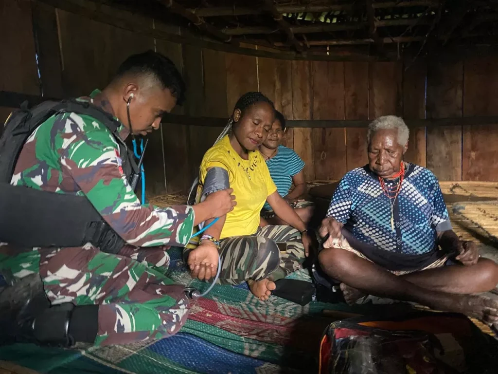 Satgas Pamtas Kewilayahan Yonif 721/Mks Pos Kanggime melaksanakan kegiatan program patroli pelayanan kesehatan kepada masyarakat di Desa Aulani, Distrik Kanggimr, Kab. Tolikara, Papua Pegunungan, Sabtu (23/03/24).