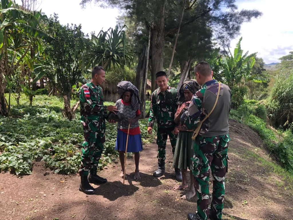 Jayawijaya ~ Satgas Yonif 200/BN melalui Pos Bolakme hadir dan menebar senyum kepada masyarakat saat melaksanakan anjangsana ke Kampung Bolakme, Distrik Bolakme, Kab. Jayawijaya, Papua Pegunungan, Sabtu (16/03/2024).
