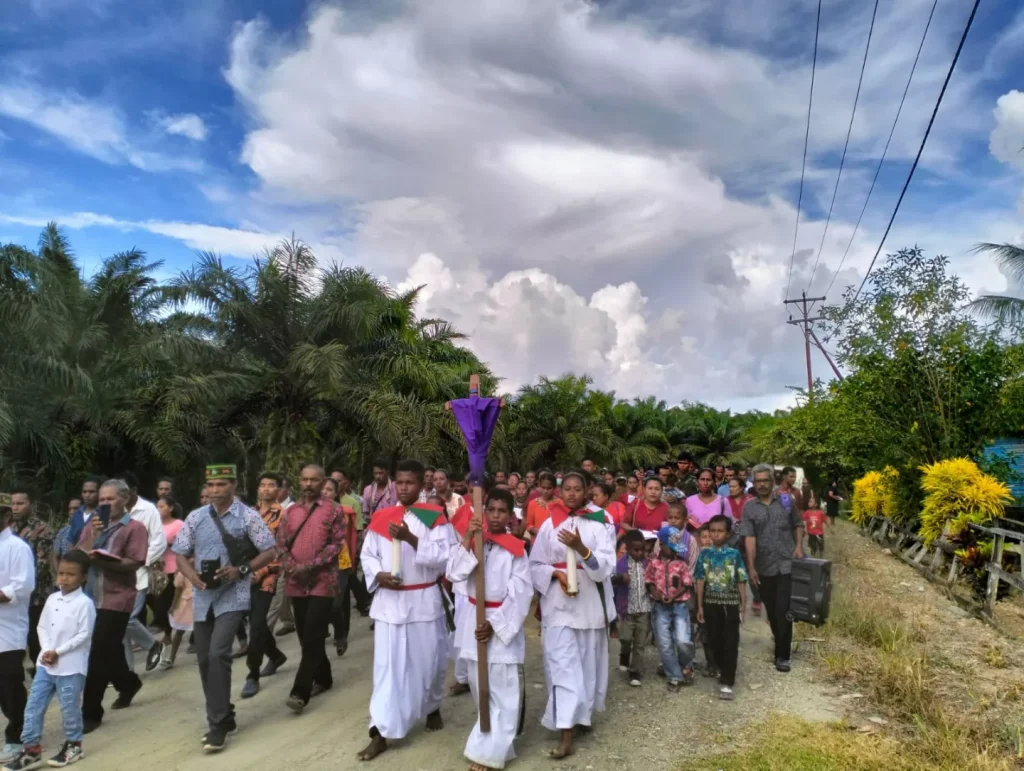 Kabupaten Keerom-Memperingati wafatnya Isa Al-masih bersama Warga Kampung Pitewi merayakan kegiatan Jum’at Agung di Gereja katolik st. Arnoldus Di Kampung petewi Perayaan ini dimulai dengan ditandai dibukanya kegiatan Camping Paskah oleh Ketua panitia pastor willem Bungan Jum’at (29/04/2024).
